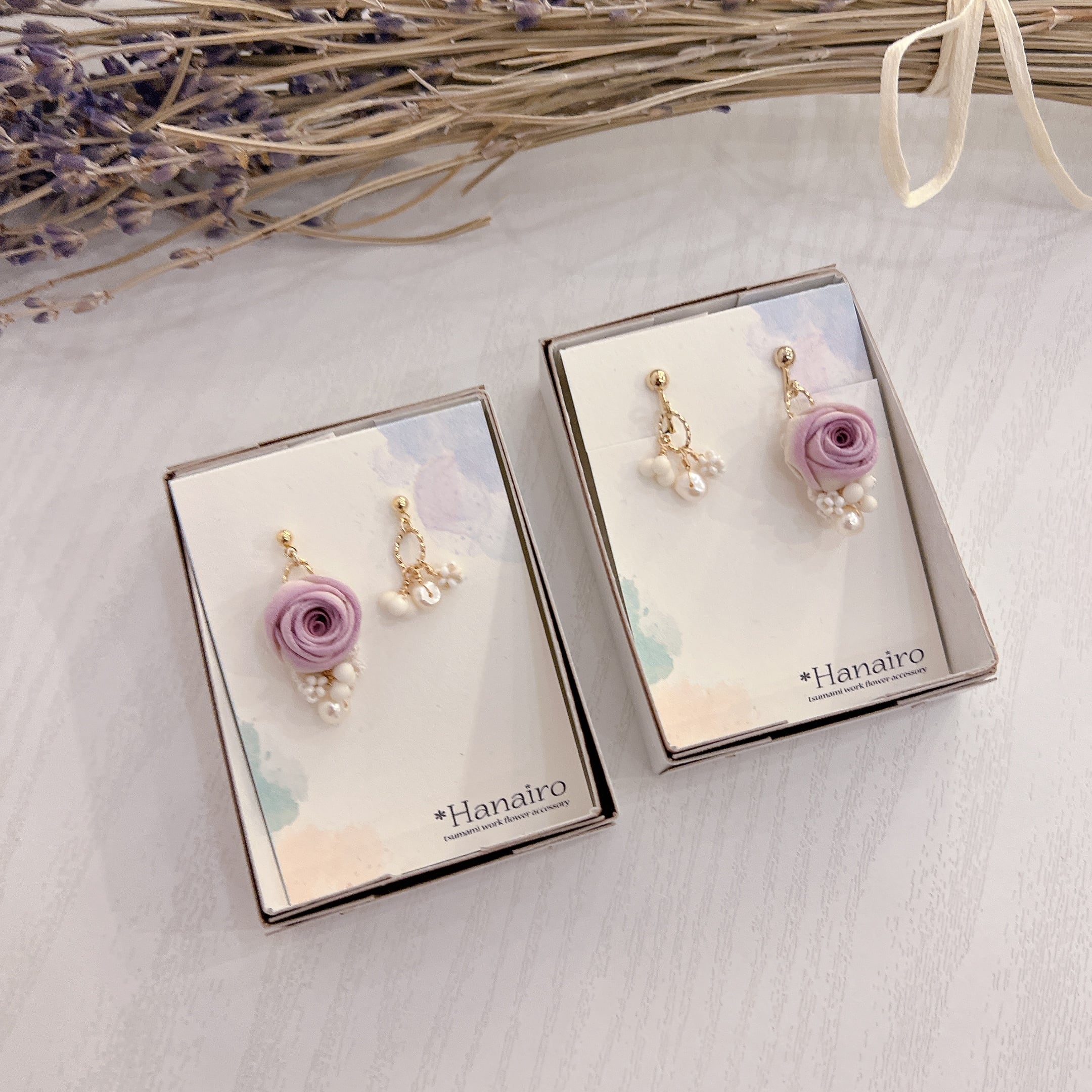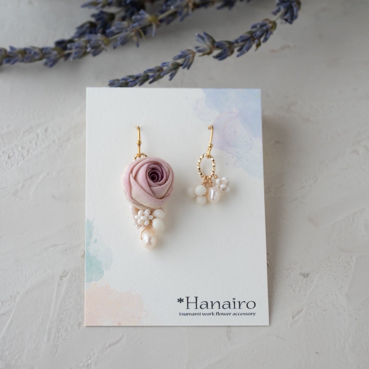 つまみ細工アクセサリー作家*Hanairoの耳飾り。