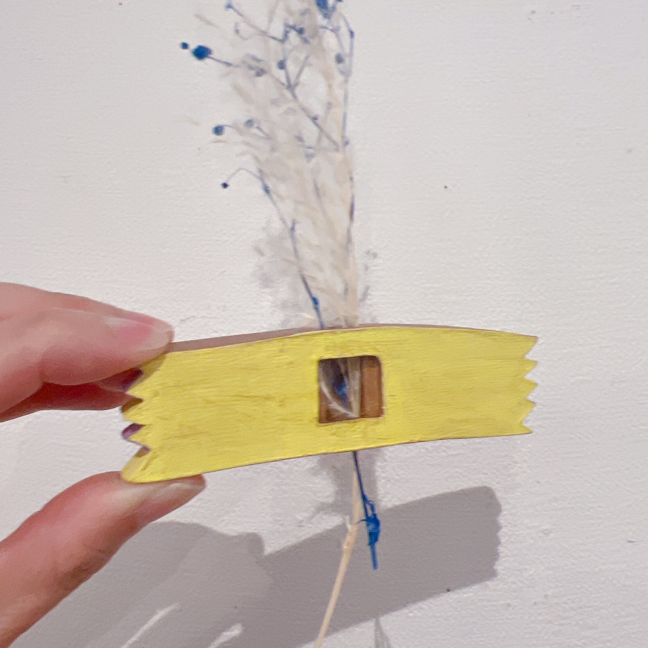 まるでマスキングテープでとめてドライフラワーを壁に飾っているように見える「3Dマスキングテープ」。