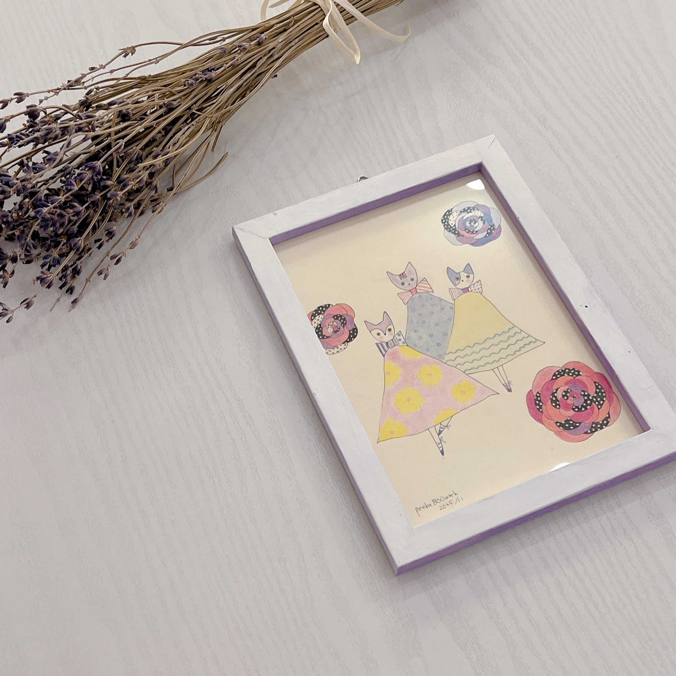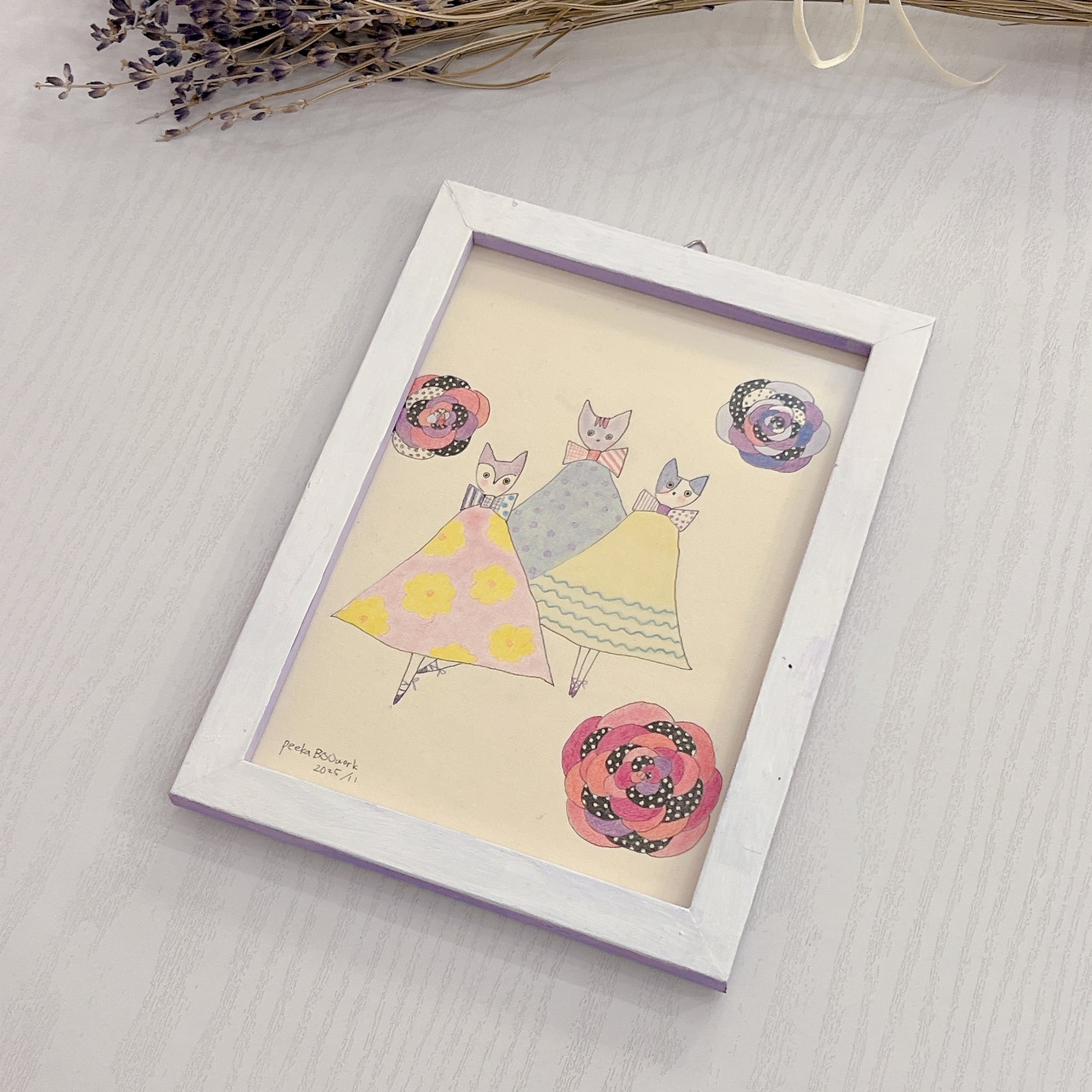 【peekaBOOwork】原画「バレエねこ3」※額装付き