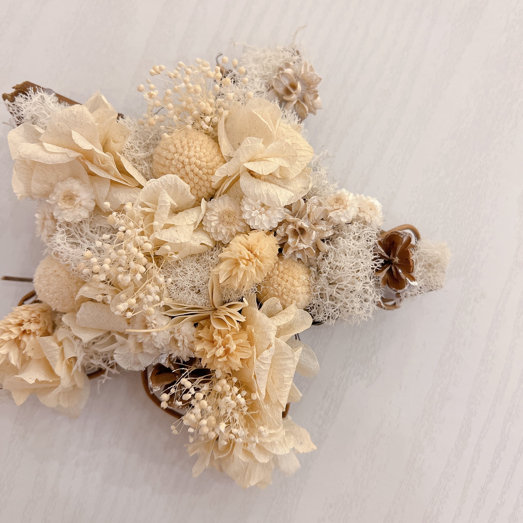 絶妙な配色のプリザーブドフラワーを組み合わせた1点物の星リース。