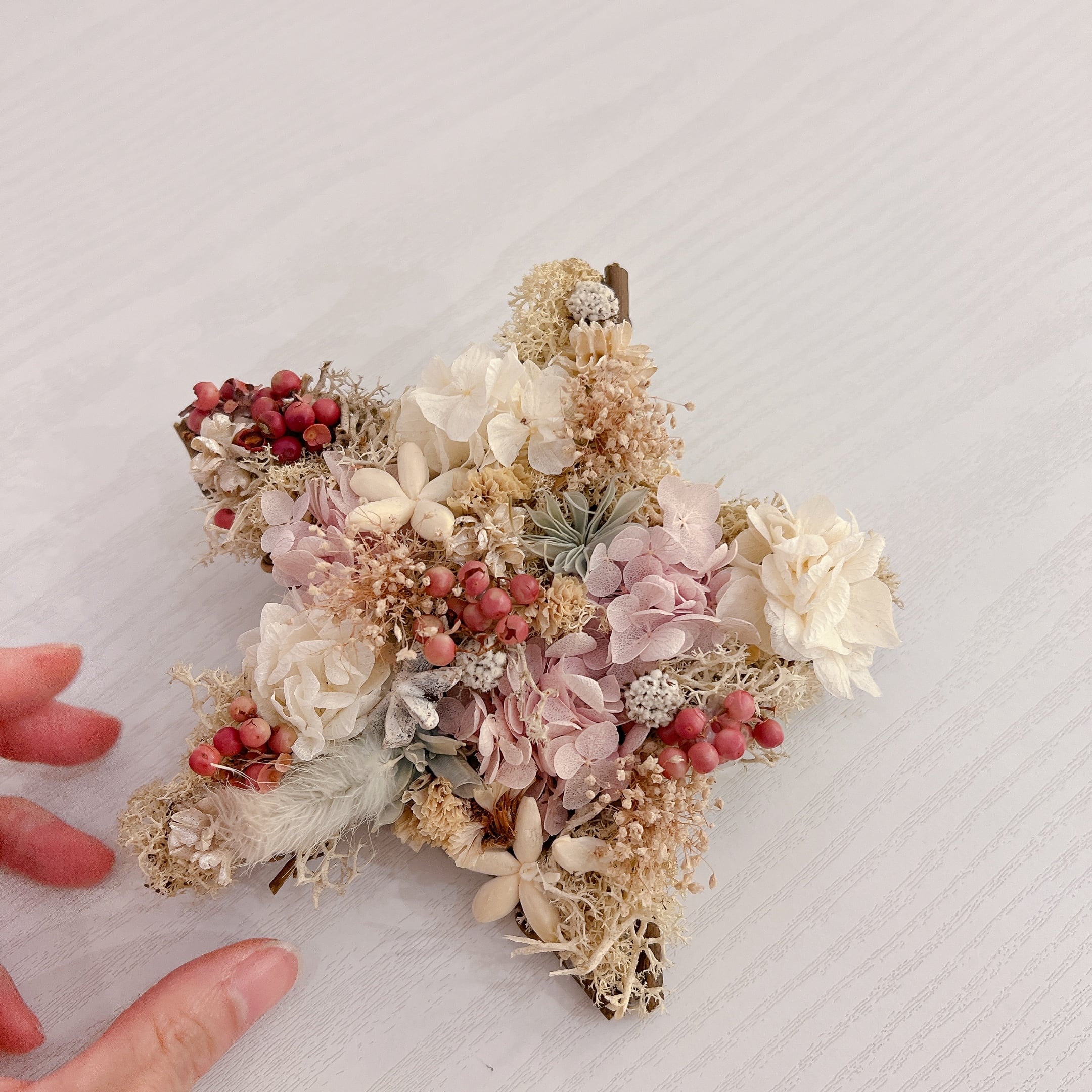 絶妙な配色のプリザーブドフラワーを組み合わせた1点物の星リース。