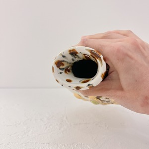 陶器は強い衝撃がかかると割れてしまうのでご注意ください。作品は1点1点手作りで制作しており、同じ技法を用いても土や釉薬に含まれる天然鉱物などの影響に加え、その日の天候によっても焼き上がりは異なり、それが陶器の楽しい特性の一つでもあり魅力です。長くお使い頂いていると、日々お手入れしていてもひびやシミもでてきてしまいますが、そういった表情の変化も併せてお楽しみ頂けたらと思います。