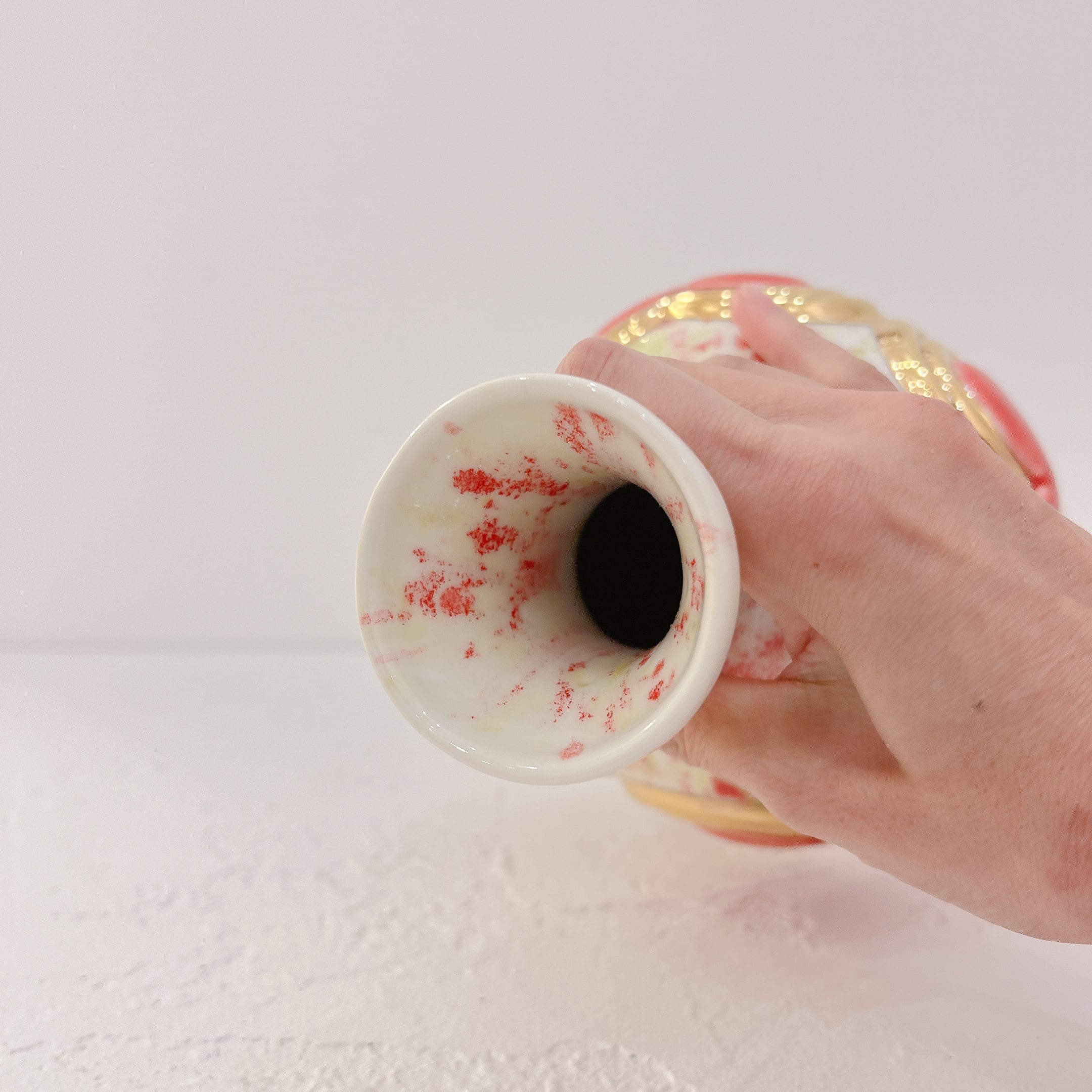 キラキラと輝くゴールドカラーは純金を主原料とした陶磁器用の金彩を使用して焼き付けています。