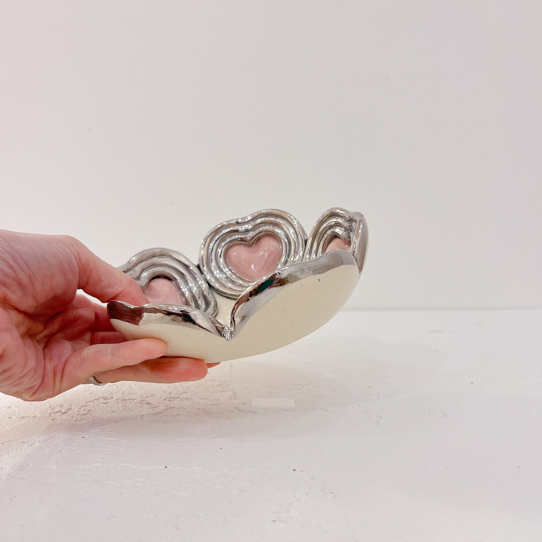 こちらの陶器はアクセサリーを入れるジュエリートレイとしてお使いいただくのがオススメです。まるでお部屋のインテリアのように飾っていただけますよ。