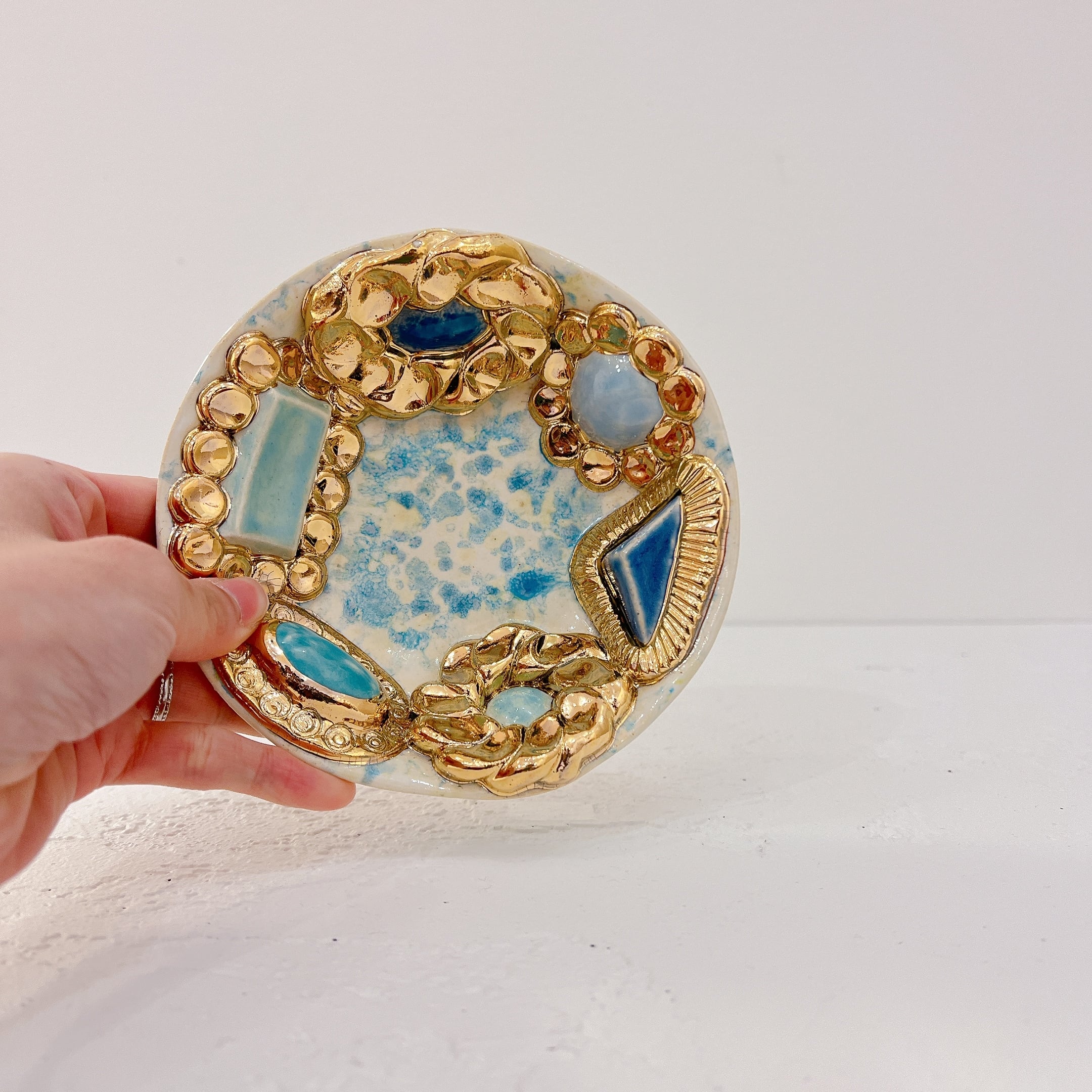 こちらの陶器はアクセサリーを入れるジュエリートレイとしてお使いいただくのがオススメです。まるでお部屋のインテリアのように飾っていただけますよ。