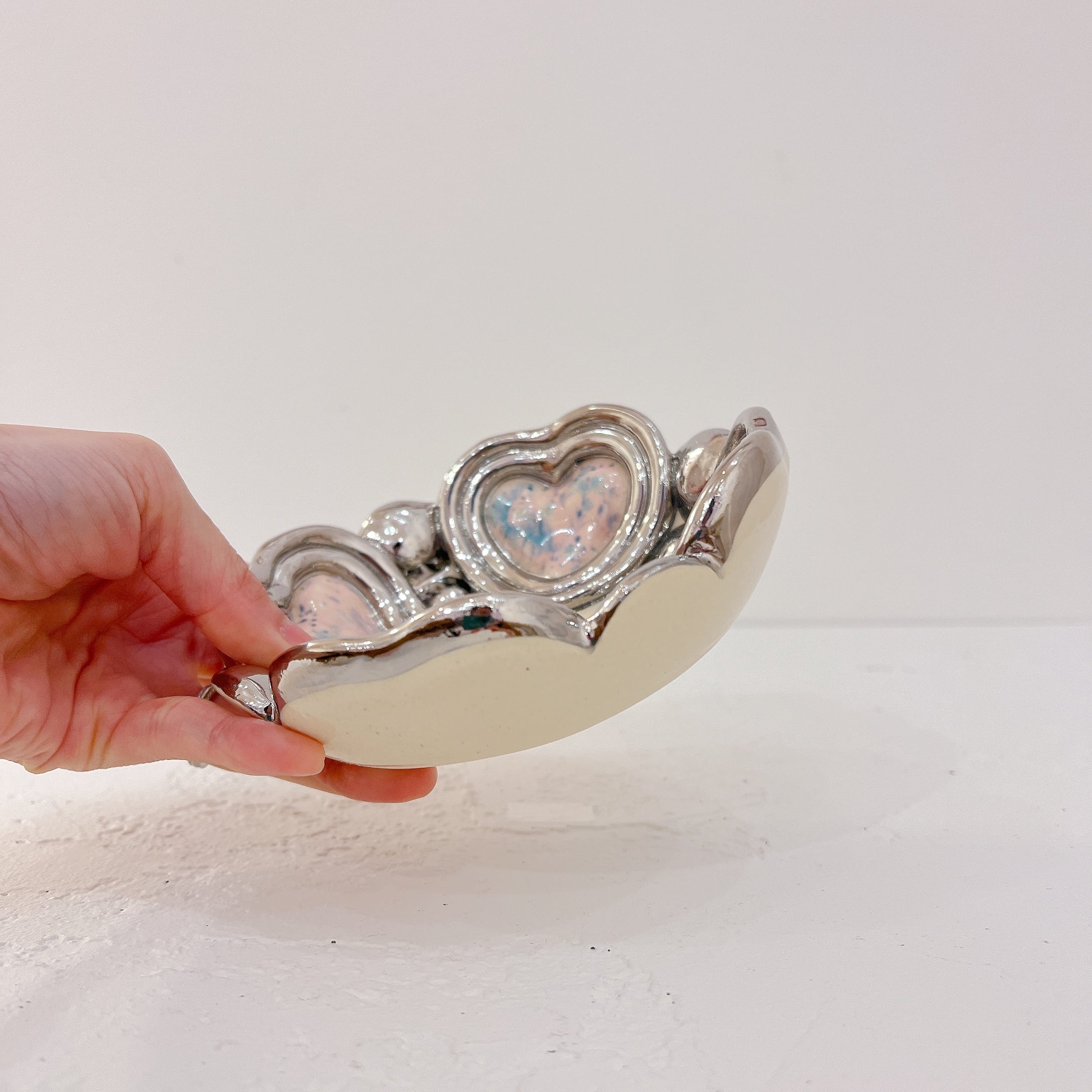 こちらの陶器はアクセサリーを入れるジュエリートレイとしてお使いいただくのがオススメです。まるでお部屋のインテリアのように飾っていただけますよ。