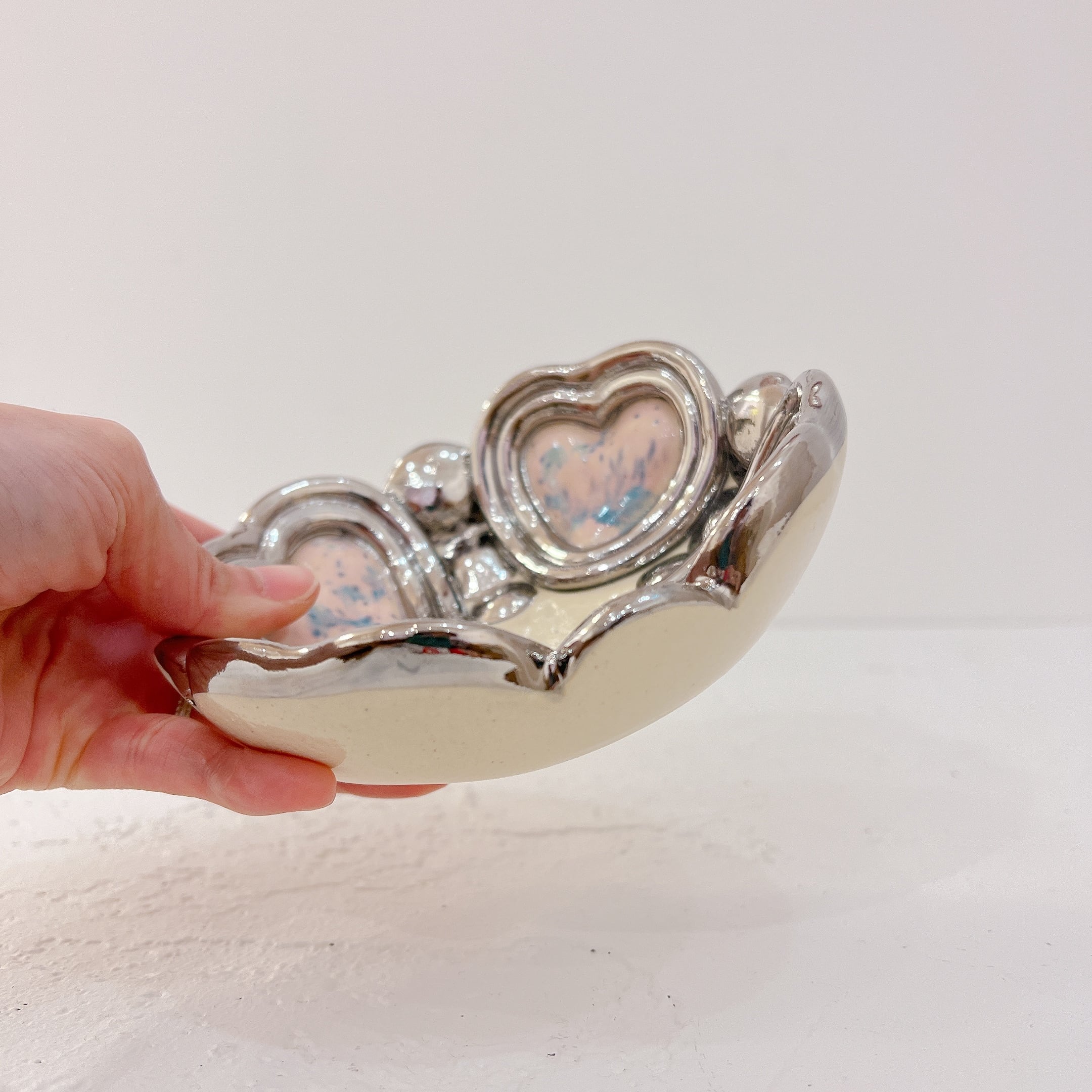 こちらの陶器はアクセサリーを入れるジュエリートレイとしてお使いいただくのがオススメです。まるでお部屋のインテリアのように飾っていただけますよ。