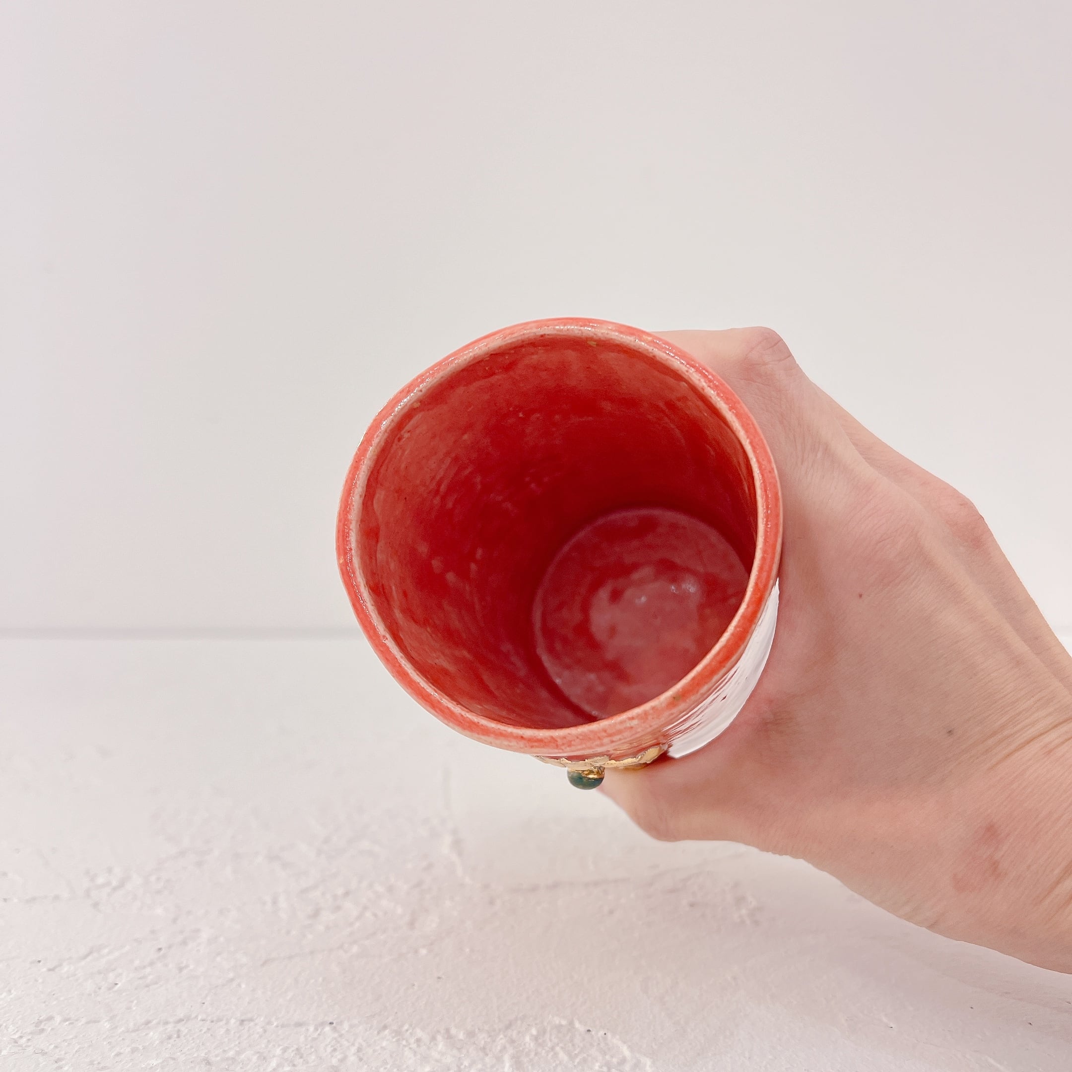 陶器は強い衝撃がかかると割れてしまうのでご注意ください。ペン立ては使用している土の特性上、水が染み出す可能性があります。そのため、カップや花瓶としてはご使用いただけません。作品は1点1点手作りで制作しており、同じ技法を用いても土や釉薬に含まれる天然鉱物などの影響に加え、その日の天候によっても焼き上がりは異なり、それが陶器の楽しい特性の一つでもあり魅力です。長くお使い頂いていると、日々お手入れしていてもひびやシミもでてきてしまいますが、そういった表情の変化も併せてお楽しみ頂けたらと思います。