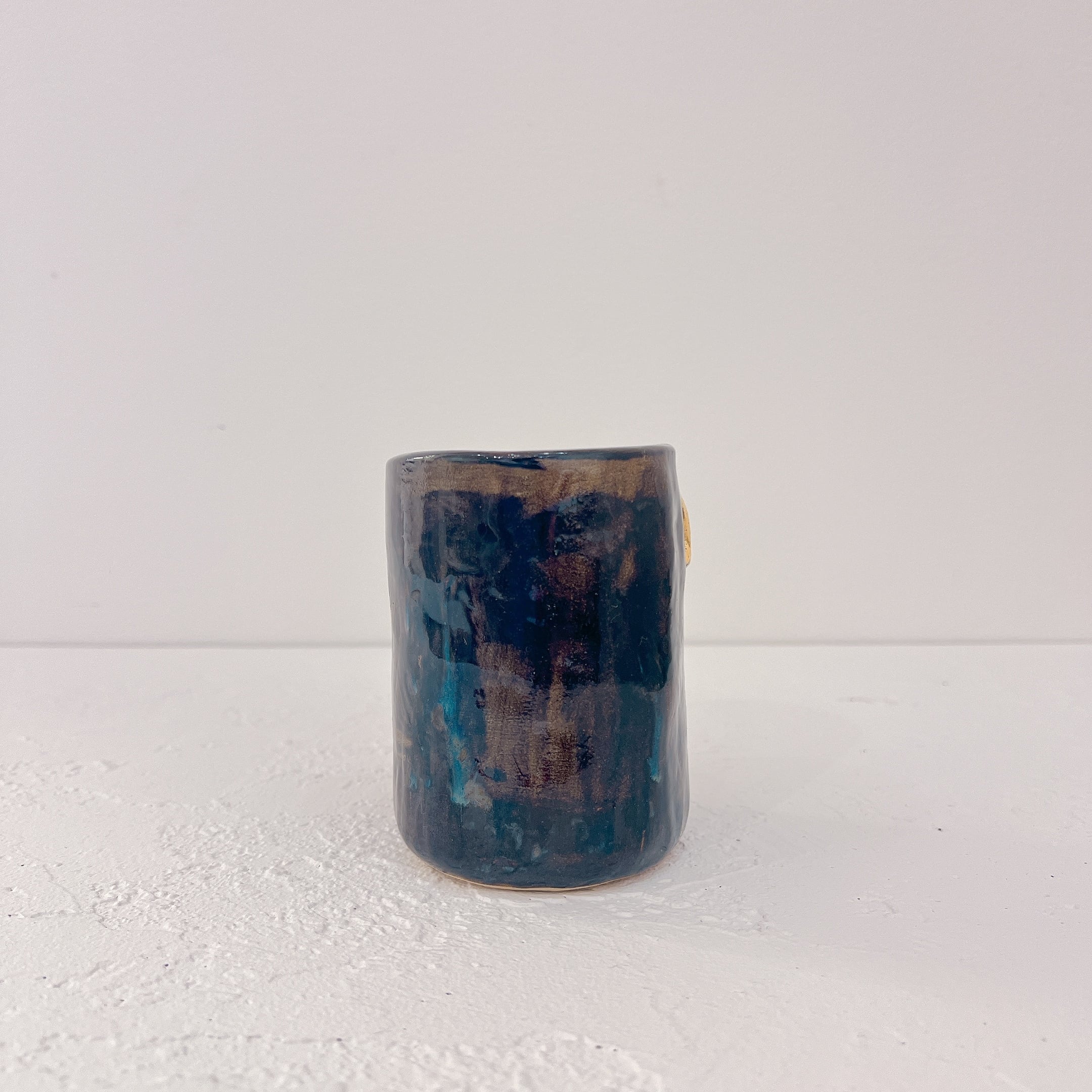 陶器は強い衝撃がかかると割れてしまうのでご注意ください。ペン立ては使用している土の特性上、水が染み出す可能性があります。そのため、カップや花瓶としてはご使用いただけません。作品は1点1点手作りで制作しており、同じ技法を用いても土や釉薬に含まれる天然鉱物などの影響に加え、その日の天候によっても焼き上がりは異なり、それが陶器の楽しい特性の一つでもあり魅力です。長くお使い頂いていると、日々お手入れしていてもひびやシミもでてきてしまいますが、そういった表情の変化も併せてお楽しみ頂けたらと思います。