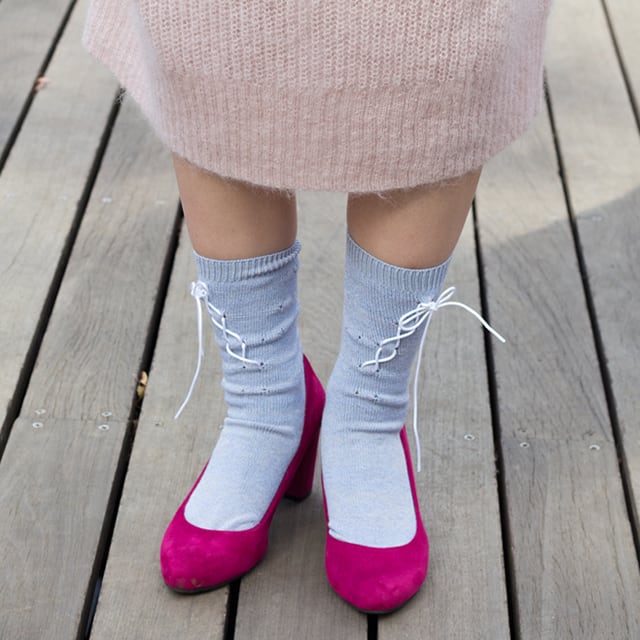 綿混のメンズソックスのような厚手過ぎないベース、デニムカラーに細かいラメが大人な印象。