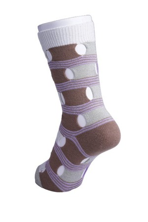 4色のカラーを、まるでブロックのように積み上げ、その間にボーダーを配置し、穴を開けるという高度な技術力が必要なBANSANならではのソックスです。
