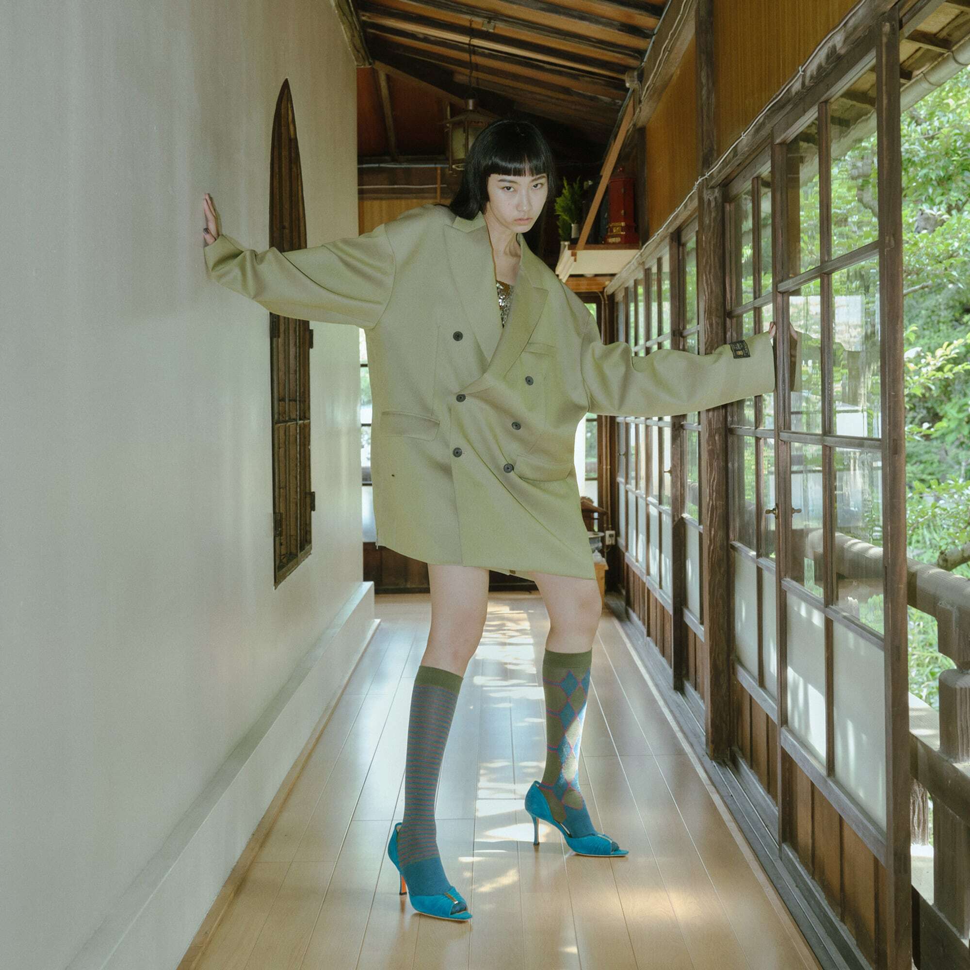 【2nd PALETTE】オリーブ アーガイル/olive_argyle・ハイソックス